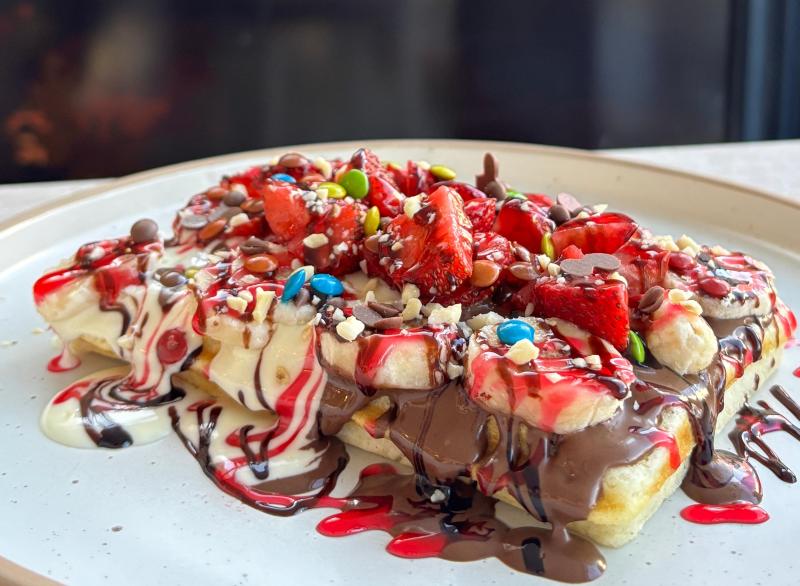 Waffle Hamuru,Çilek,Muz,Süslemeler Ve Classic Çikolata İle Servis Edilir.