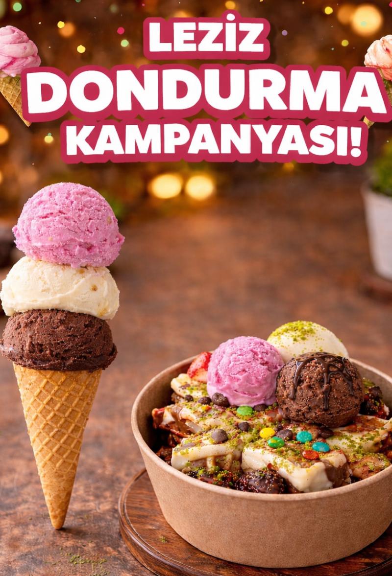 Dondurma Çeşitleri:Vanilya(sade)-Kakoa-Bal Badem,Çilek,Karamel,Böğürtlen,Limon,İtalyan Karamel.